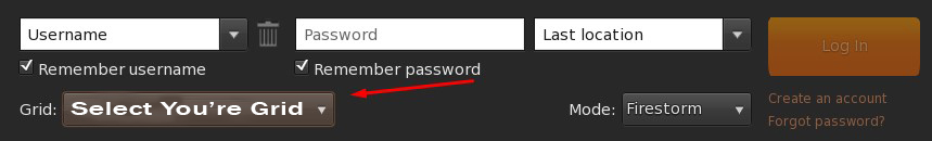 - Dopo aver creato l’account avatar nella pagina http://login.green-worlds.com:8002, inserisci il tuo nome e cognome nei campi, la tua password e nella parte "Grid" seleziona "GreenWorlds".